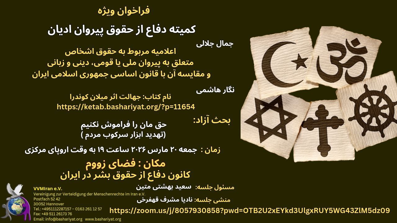 از شما فعالین حقوق بشر، آگاهان و همکاران گرامی دعوت میشود تا ما را در این جلسه ی سخنرانی همراهی فرمائید