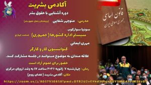 کانون دفاع از حقوق بشر در ایران برگزار میکند از شما فعالین حقوق بشر، آگاهان و همکاران گرامی دعوت میشود تا ما را در این جلسه سخنرانی همراهی فرمائید سخنرانی، پرسش و پاسخ، بحث و گفتگو