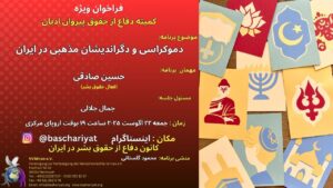 کانون دفاع از حقوق بشر در ایران برگزار میکند از شما فعالین حقوق بشر، آگاهان و همکاران گرامی دعوت میشود تا ما را در این جلسه ی سخنرانی همراهی فرمائید سخنرانی، پرسش و پاسخ، بحث و گفتگو