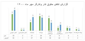 گزارش آماری ماهیانه نقض حقوق کار و کارگر در مهرماه ۱۴۰۰