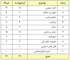 گزارش آماری و تحلیلی ماهیانه نقض حقوق پیروان ادیان- خرداد ماه ۱۴۰۴