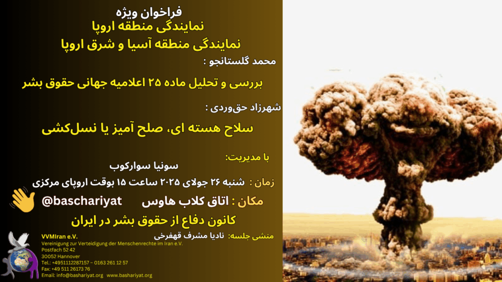 فراخوان جلسه ویژه نمایندگی منطقه جنوب آلمان- ۲۵ جولای ۲۰۲۵