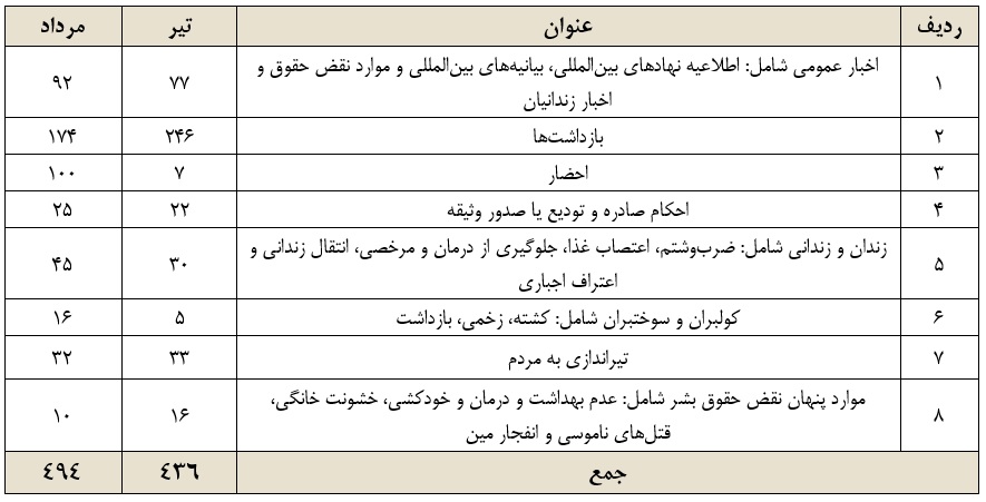 این گزارشات آماری از میان بیش از ۱۶۵ خبر که در طول ماه مرداد ۱۴۰۴ تهیه شده است.