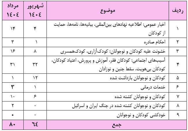 این گزارشات آماری از میان بیش از ۸۰ خبر که در طول شهریور ماه ۱۴۰۴ تهیه شده است.