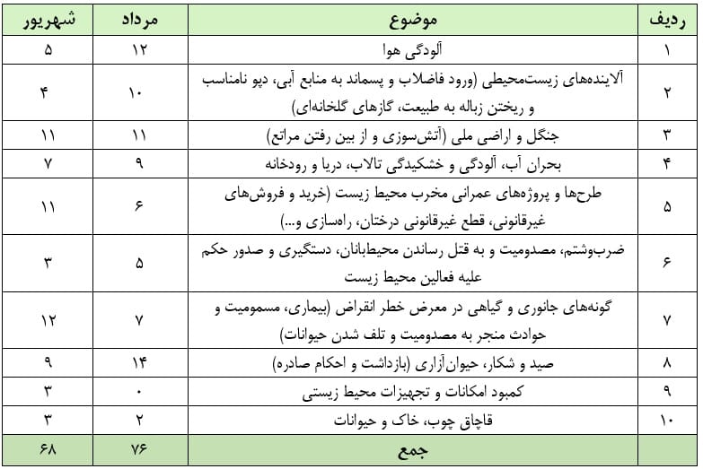 این گزارشات ازسایت کمیته دفاع ازمحیط زیست تهیه شده است که از رسانههای داخلی و خارجی مانند هرانا، ایلنا، ایرنا، دیدهبان، ایسنا، مهر، خبربان، قطره، تسنیم، یورونیوز، انصاف و پایگاه خبری محیط زیست و حیات وحش جمعآوری گردیده است.