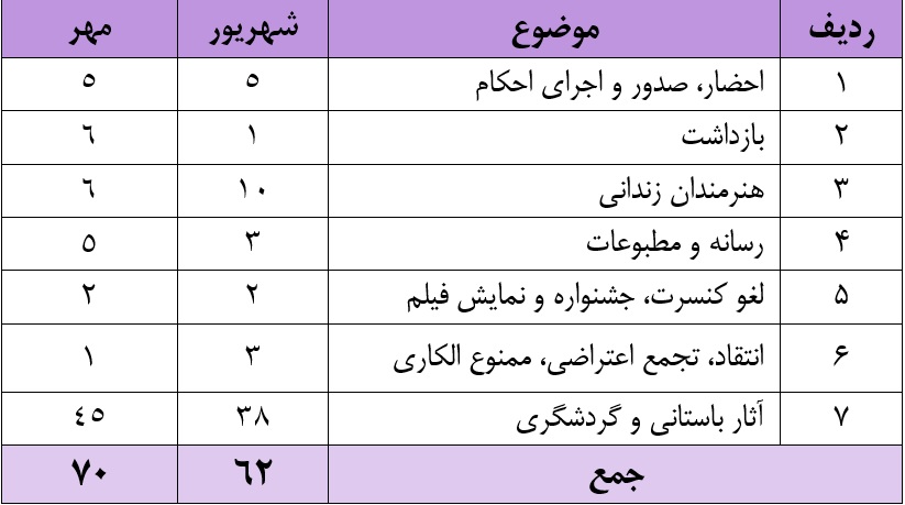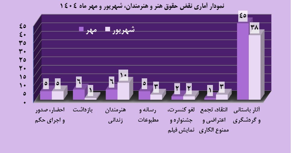 در گزارش مهرماه ۱۴۰۴ به شرح نقض حقوق هنروهنرمندان می پردازیم: