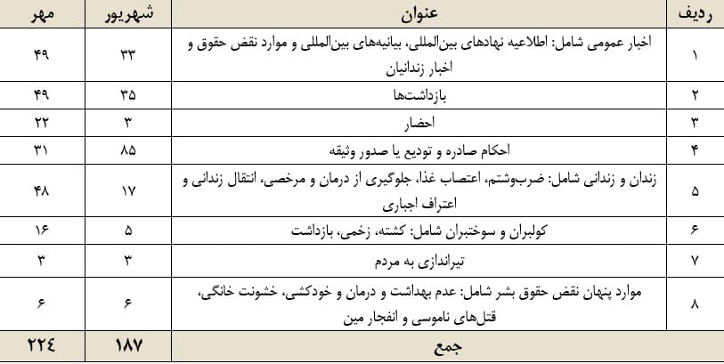 این گزارشات آماری از میان بیش از ۱۹۱ خبر که در طول ماه مهر ۱۴۰۴ تهیه شده است.