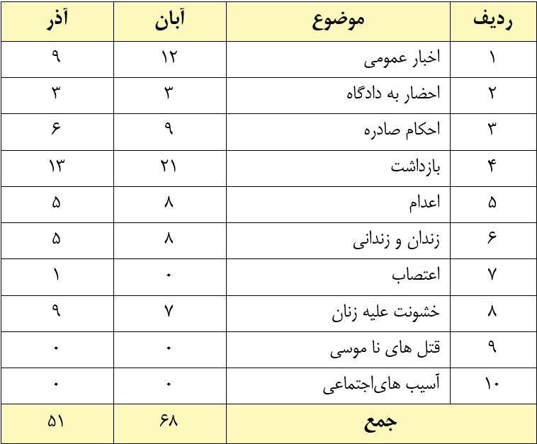 این گزارشات آماری از میان بیش از 51 خبر که در طول آذر ماه ۱۴۰۴ تهیه شده است.