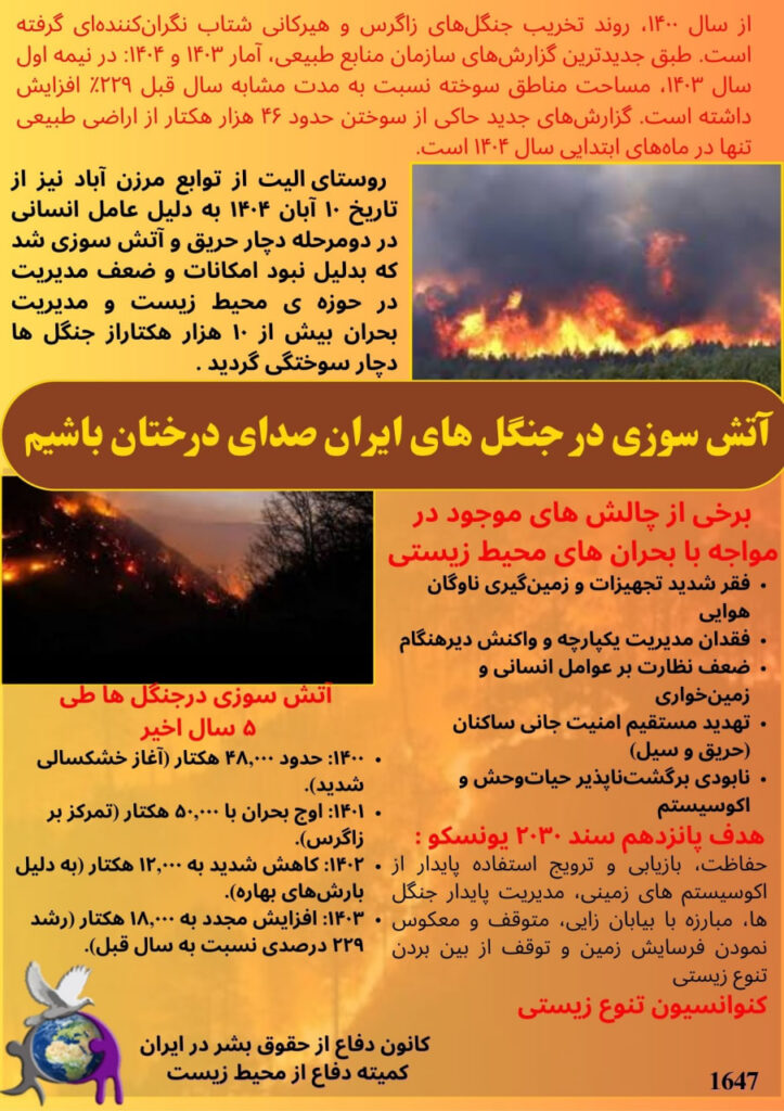 اطلاعیه ۱۶۴۸ کمیته دفاع از محیط زیست با موضوع حداقل حق من تنفس سالم و حیات بخش است