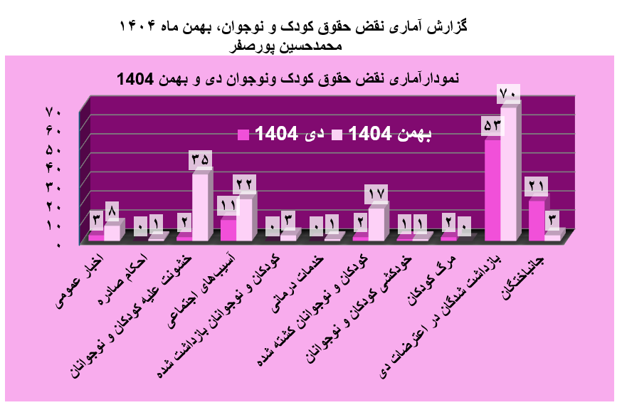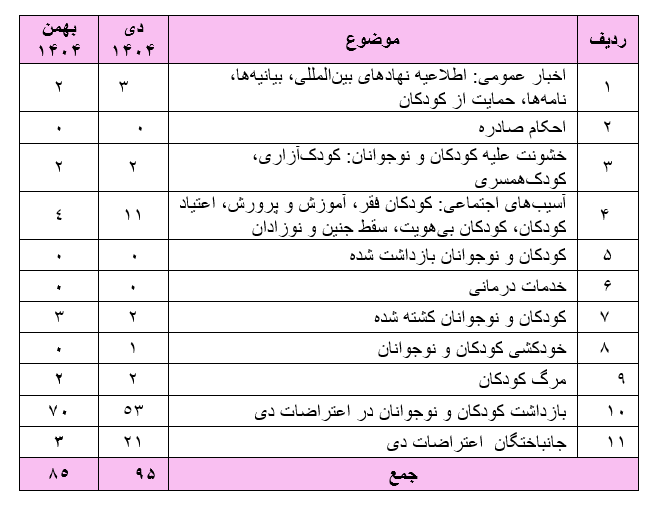 این گزارشات آماری از میان بیش از ۶۰ خبر که در طول بهمن ماه ۱۴۰۴ تهیه شده است.