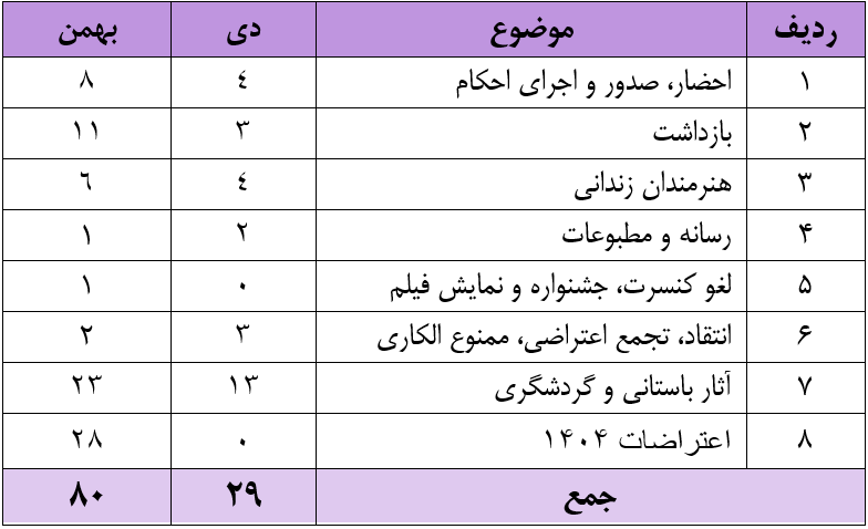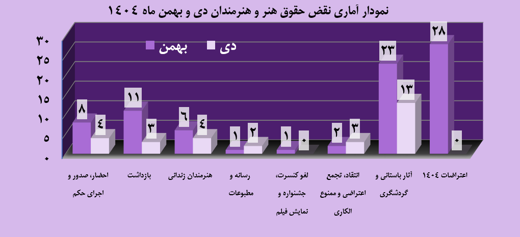 در گزارش بهمن۱۴۰۴ به شرح نقض حقوق هنروهنرمندان می پردازیم: